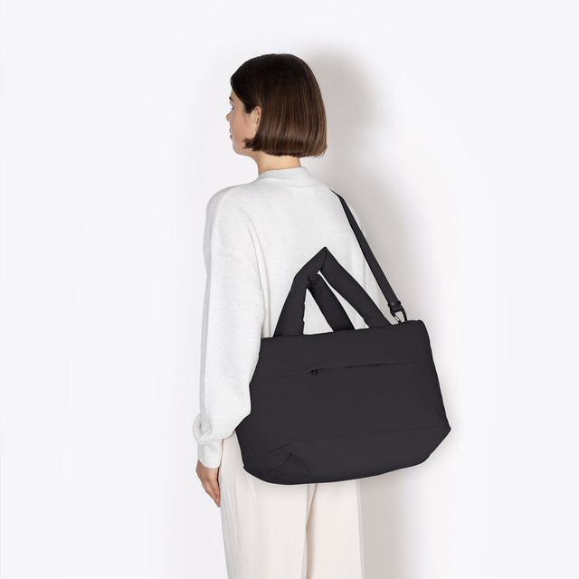 This bag will take you to cloud nine. Olivia Bag combines minimalist design with a modern, puffy look. On the outside, a zip pocket on the front provides secure storage space, while the pocket on the back can be converted into a trolley holder - ideal for traveling. Carry it casually in your hand or comfortably over one shoulder. An additional strap can be optionally attached to carry the bag diagonally if you want to load more. Designed with function in mind, the Olivia bag features two zip pockets and two open compartments - roomy enough to carry your laptop securely, alongside your water bottle and more.
