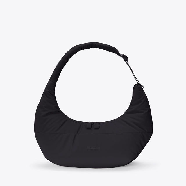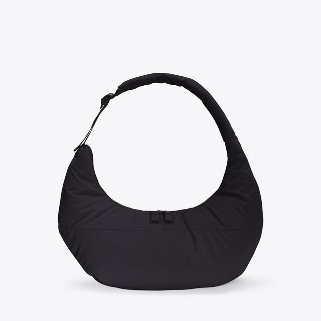 Shaped like a croissant, this extraordinary bag can be comfortably worn around the body. With its puffy style, the Shota Bag is a statement accessory that adds a striking accent to your look. The handles emerge elegantly from one side of the bag, giving it a unique, sculptural silhouette. In true minimalist style, there is only one hidden zip pocket outside for quickly accessible items. Inside, Shota offers plenty of storage space and a further zip pocket.